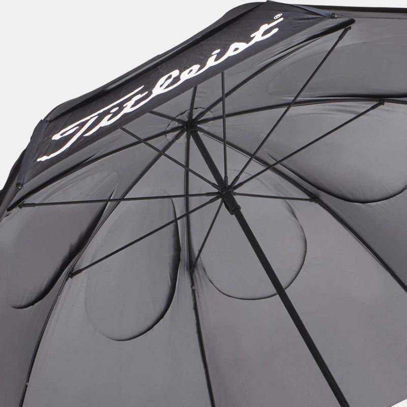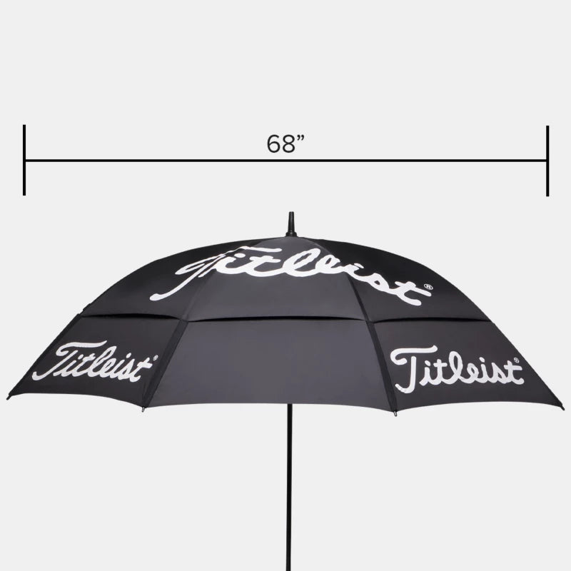 Featuring updated Titleist branding, the durable Tour Double Canopy Umbrella provides 68 inches of coverage from rain and sun, delivering the ultimate protection when you need it most.