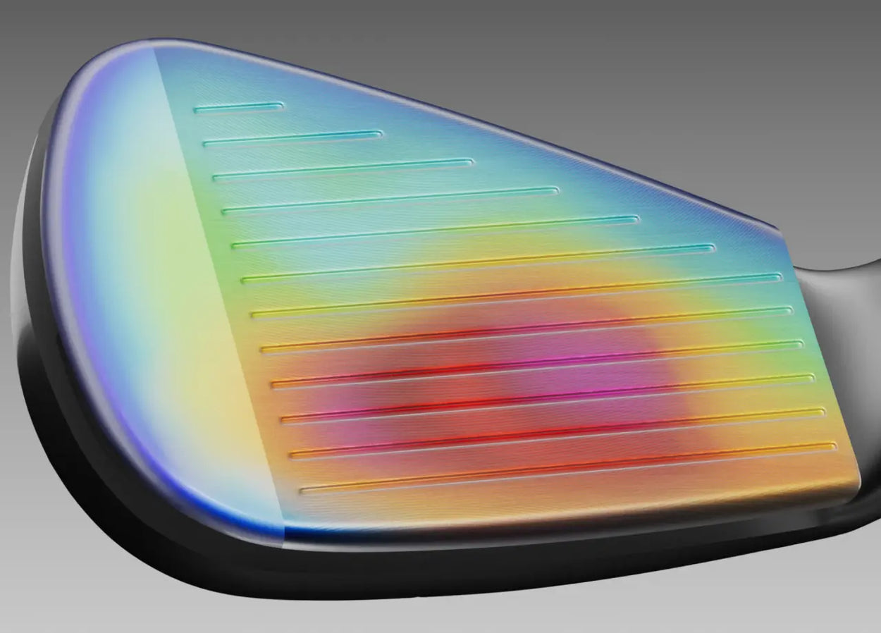 Simulation based enhancement of the sweet spot which maximizes forgiveness and balls speed across the entire face.