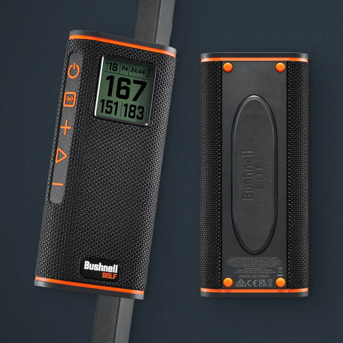 Wingman View features Bushnell’s franchise feature BITE magnetic mount that allows you to easily attach the Wingman View right on the cart bar.