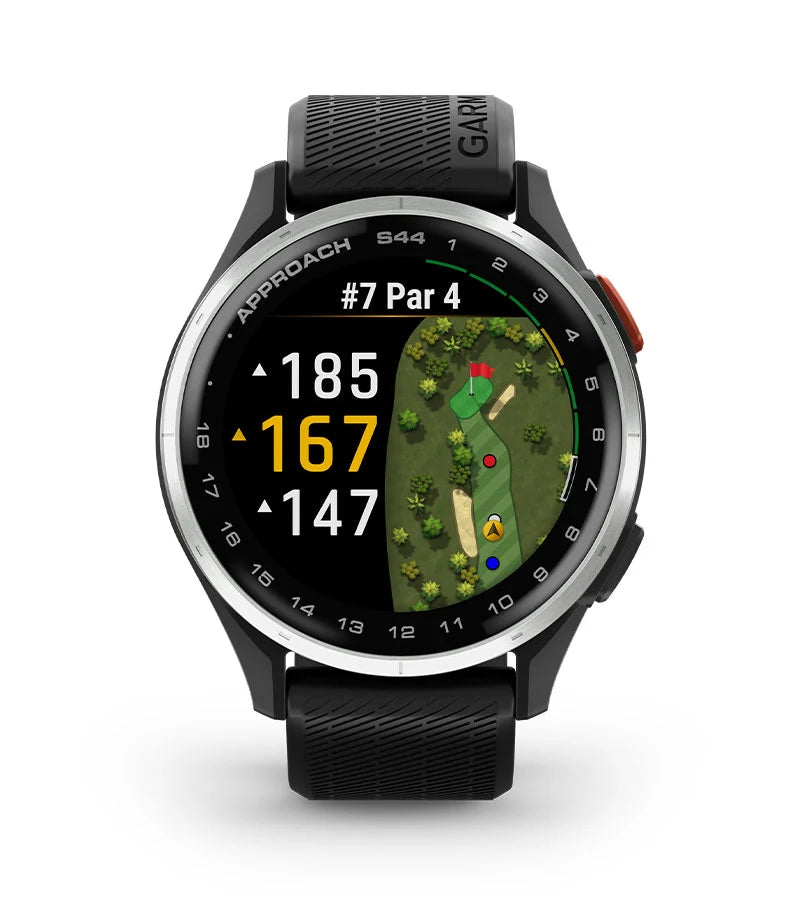 The stunning 1.2-inch AMOLED touchscreen display makes it easy to see key yardages to the green, hazards and layups on 43,000+ courses.