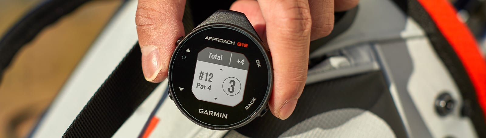 The Approach G12 handheld’s rechargeable battery lasts up to 30 hours in GPS mode.
