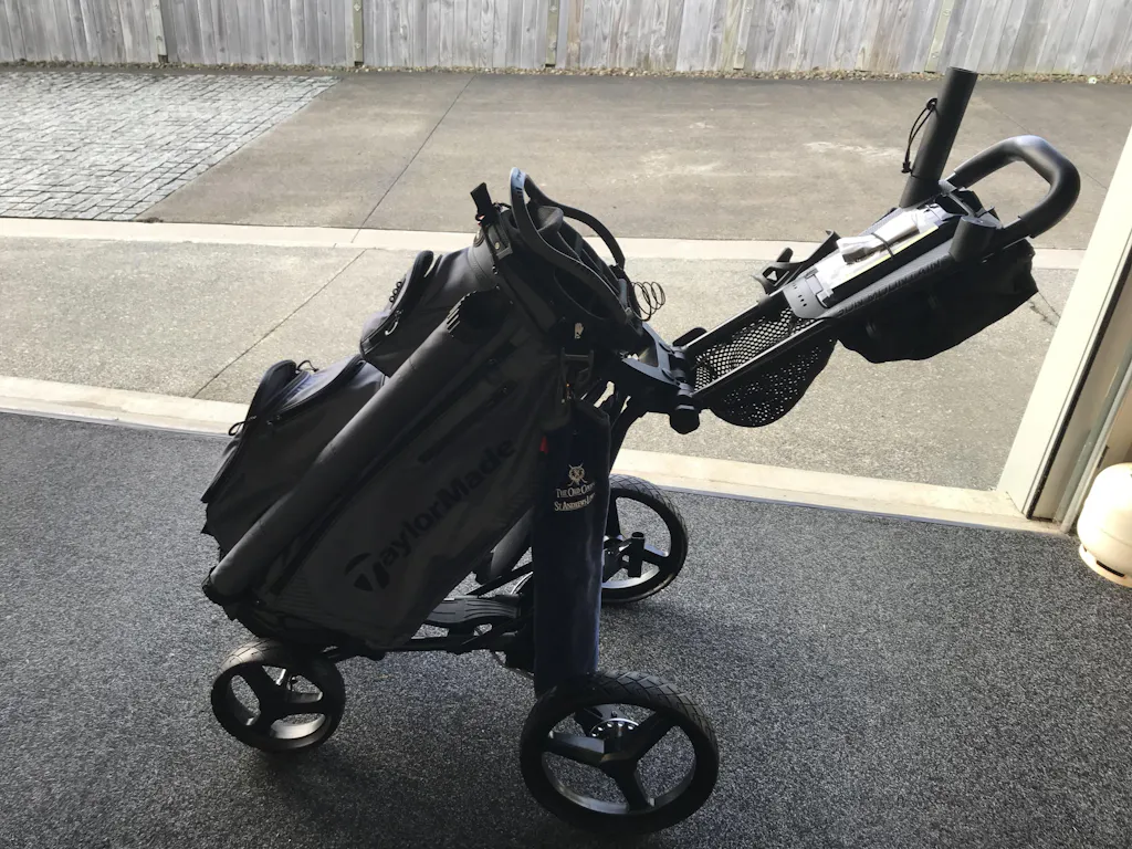 PX4 is the next generation of the popular Pathfinder 4. The upper and lower bag brackets nest your bag on the cart and work equally well for cart or stand bags. New is an updated accessory console and continuous handle. The new accessory console is continuous and allows you to push the cart with one hand.