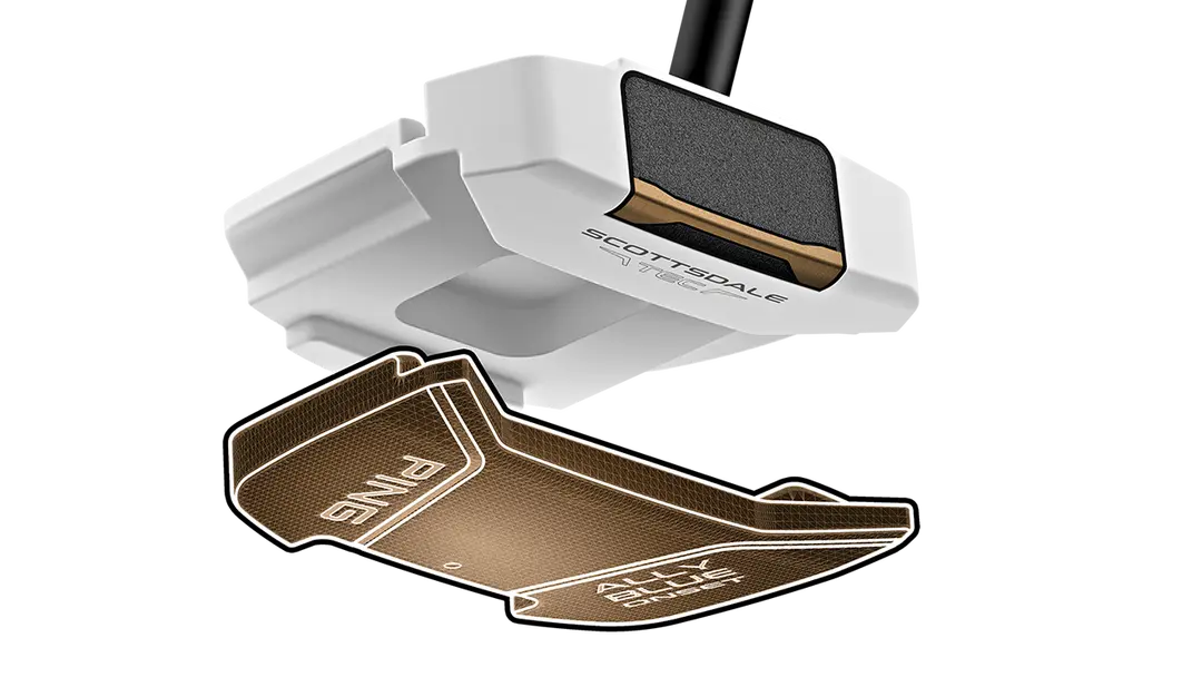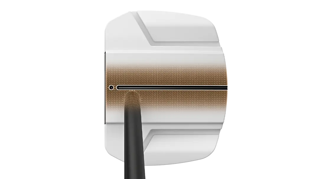 Inspired by eye tracking research, this new alignment technology provides a distinct focal point on the top rail of Scottsdale TEC putters. By combining a focal point with a long alignment line, the design helps naturally quiet a player’s eyes before the stroke, making it easier to center and maintain a stable gaze at the critical moment.